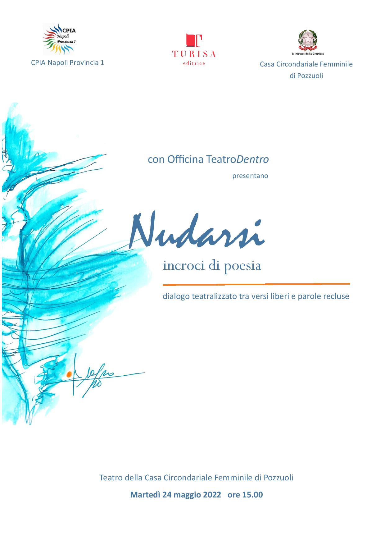 Pozzuoli (Na) – A metà tra l’ ambito letterario e ambito del sociale l’incontro che si svolgerà martedì 24 maggio 2022, a partire dalle ore 15.00, presso la Casa Circondariale Femminile di Pozzuoli. Alcune poesie tratte da Nudarsi, l’ultima silloge di Rita Felerico edita da Turisa, saranno messe in scena dalle allieve del laboratorio di Scrittura “La Sacca Iraconda”, attivo nel carcere dal 1997. “La poesia in carcere – così descrive l’esperienza Angela Cicala, referente dell’itinerario didattico –si fa cura, carezza, rapimento; si può trasformare in drammaturgia, può intrecciare relazioni che, tramutate in dialogo, in incroci di parole, possono dare vita, come in questo caso, alla trama di una pièce teatrale”.
