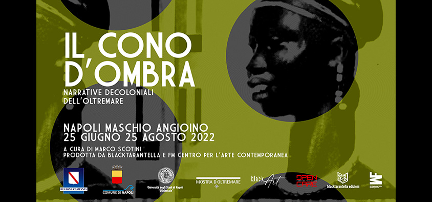 ‘Il cono d’ombra’, Narrative Decoloniali dell’Oltremare (25 giugno – 25 agosto 2022 al Castel Nuovo – Maschio Angioino, Napoli) è un progetto di Black Tarantella (Napoli), FM Centro per l’Arte Contemporanea (Milano) e con il patrocinio della Regione Campania, Comune di Napoli, Mostra d’Oltremare e dell’Università L’Orientale di Napoli. La mostra, a cura di Marco Scotini, direttore artistico di FM Centro per l’Arte Contemporanea, occupa due spazi di Castel Nuovo (Antisala dei Baroni nell’ala nord, primo piano e Sala dell’Armeria al piano terra) che furono parte della Seconda Mostra Internazionale d’Arte Coloniale tenuta proprio a Napoli, nel Maschio Angioino, dal 1ottobre 1934 al 31 gennaio 1935 e quella del 1940 che Inaugura gli spazi della Mostra d’Oltremare.