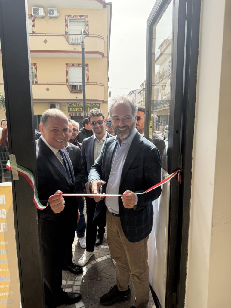 CATELLO MARESCA E MASSIMO PELLICCIA INAUGURARONO IL COMITATO ELETTORALE A VOLLA DELLA LISTA ‘IL GIGLIO – GIUSTIZIA E LEGALITA’. TAGLIANO IL NASTRO