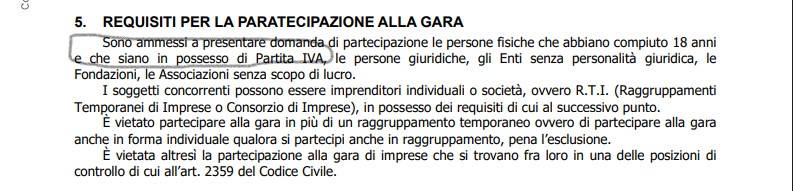 Stralcio del bando comunale, ecco l’art. 5 – Requisiti