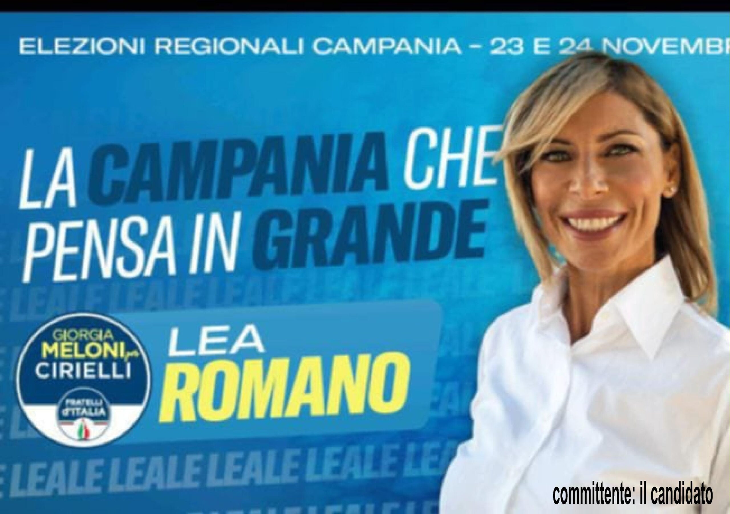 Il capolista è l’ex ministro della Cultura Gennaro Sangiuliano. Tra gli uscenti troviamo Raffaele Maria Pisacane e Marco Nonno, quest’ultimo fu eletto in quota Fratelli d’Italia nel 2020, poi, fu costretto a dimettersi per gli effetti della legge Severino a seguito di una condanna comminata dal Tribunale di Napoli. Ritorna in corsa un ex consigliere regionale del Popolo della Libertà, si tratta di Massimo Ianniciello. Tra i volti nuovi e molto forti troviamo l’imprenditrice di Brusciano Leonilde Romano detta Lea, ritenuta dagli addetti ai lavori molto competitiva, potrebbe risultare la sorpresa di questa competizione elettorale in casa Meloni.